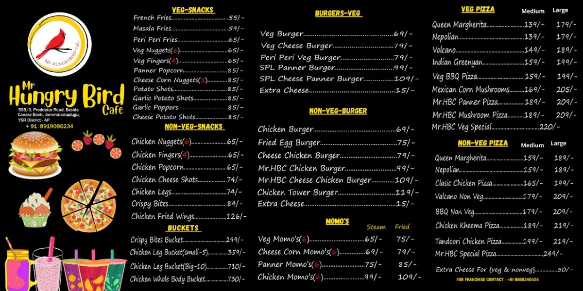 Welcome to Mr. Hungry Bird Cafe, a gem tucked away in the heart of Jammalamadugu, Andhra Pradesh. Located conveniently beside Canara Bank, this inviting cafe is the perfect spot for friends and families looking for a delightful dining experience. With its warm ambiance and air conditioning to keep you comfortable, Mr. Hungry Bird Cafe sets the stage for a relaxing meal any time of day.